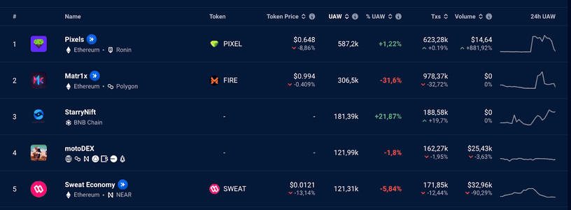 • Pixels هي اللعبة الأكثر شعبية وفقًا لـ DappRadar، حيث تستقطب 20% من حركة المرور من الفلبين و 48.6% من آسيا.
