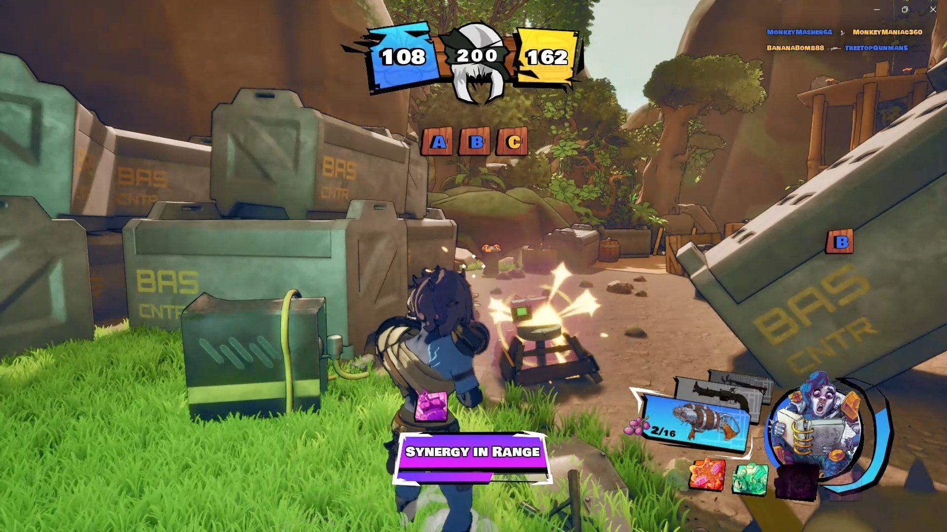 Ranked play is where things get more competitive, with results affecting a player's matchmaking score. One of the ranked game modes, Banana Fever, challenges teams to collect bananas and secure them in their vaults while trying to steal from the opposing team. More ranked modes will be added, but only after being tested in casual play and approved through the player governance system. Maps vary in size and layout, with locations like Black Market, Village Plaza, and BAS Beach Club offering different strategic possibilities.
