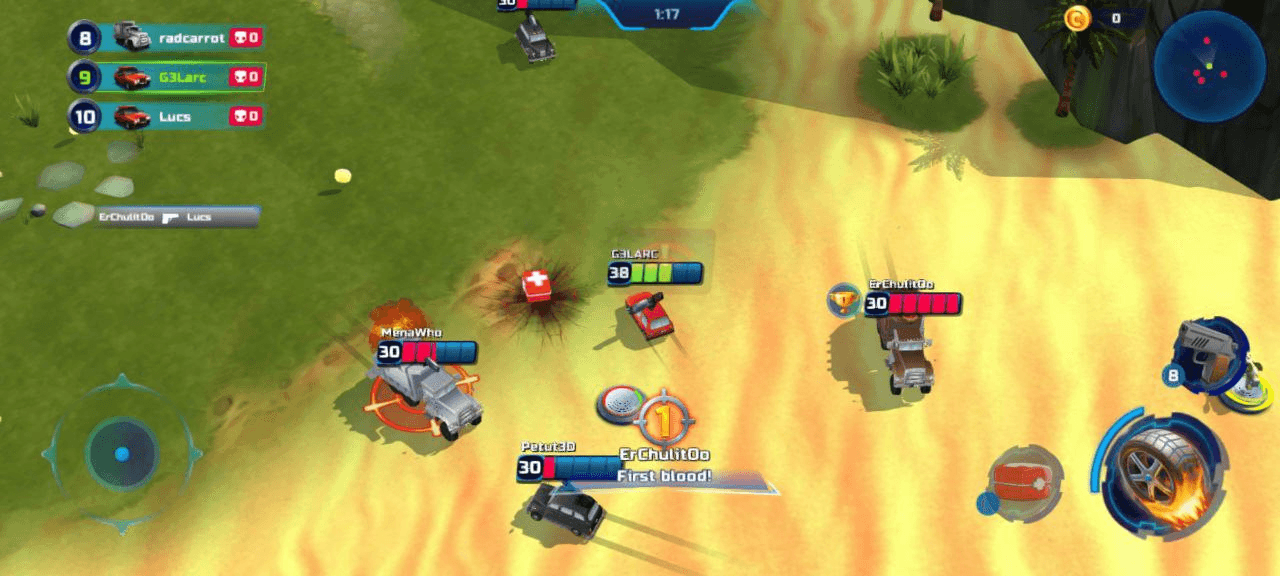 Combat itself still leans into frantic, high-energy destruction. The wait-and-attack strategy for finishing off low-health enemies still holds up, but with tougher opponents, you can’t just coast your way to easy kills. The reload time and damage output of weapons add another layer to the strategy, while your car itself can become a battering ram, adding to the sense of unbridled chaos. This game mode leans more towards casual, hectic fun than deep strategic play. Every match lasts about five minutes, making Battle Derby a great pick for quick, engaging sessions.