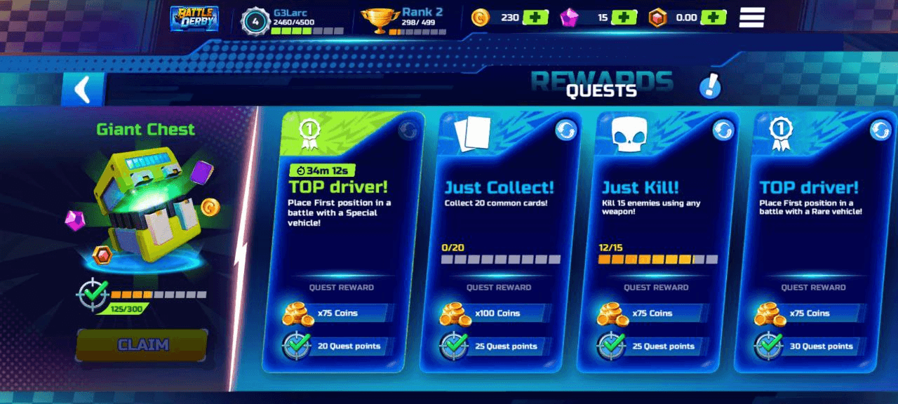 Battle Derby remains an exciting and competitive game, but it hasn't seen many major updates over time. While new features and improvements have been minimal, the good news is that the player base has significantly increased. More active players mean tougher matches, a livelier competitive scene, and an overall better experience. The addition of ranked matches has also given more weight to every battle, making victories feel more rewarding.