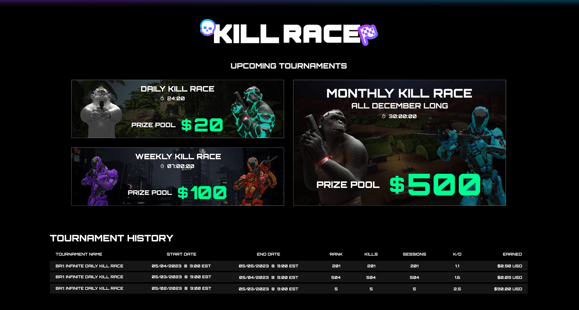 For those looking to prove their skill, Kill Races are regular events where players compete to log the most eliminations over a set time period. Players who rank high on the leaderboards earn real-money payouts directly into their in-game wallets. Entry is free during the Preseason, and rewards scale based on tournament tier and performance.