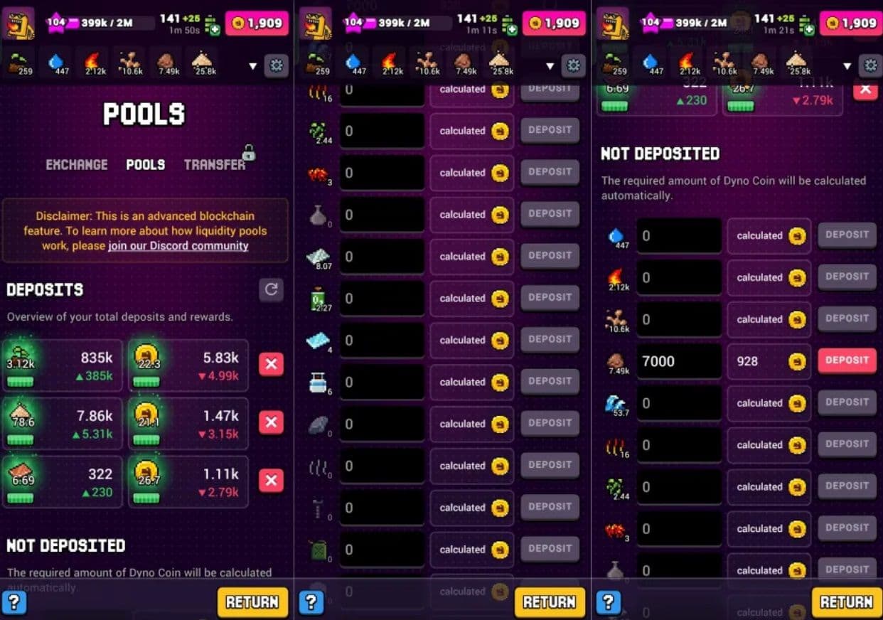 The Pools tab is one of the more advanced ways to earn in Craft World, and yeah, it can get complicated pretty fast. The idea is simple though, you add a resource and some DynoCoin into a pool at equal value. When other players trade using that pool, you earn a small cut of the fees. paid out in dynoccoin+resource. It's kind of like opening a vending machine that pays you every time someone uses it.