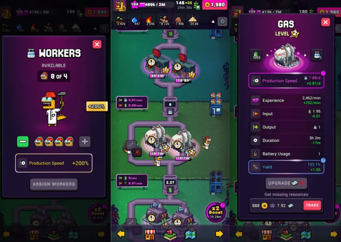 - High-tier factory upgrades: Upgrading factories like steel and gas lets you produce more valuable resources at a quicker pace. These items sell for higher profits, but the catch is that you’ll need DynoCoin to fund their input materials.