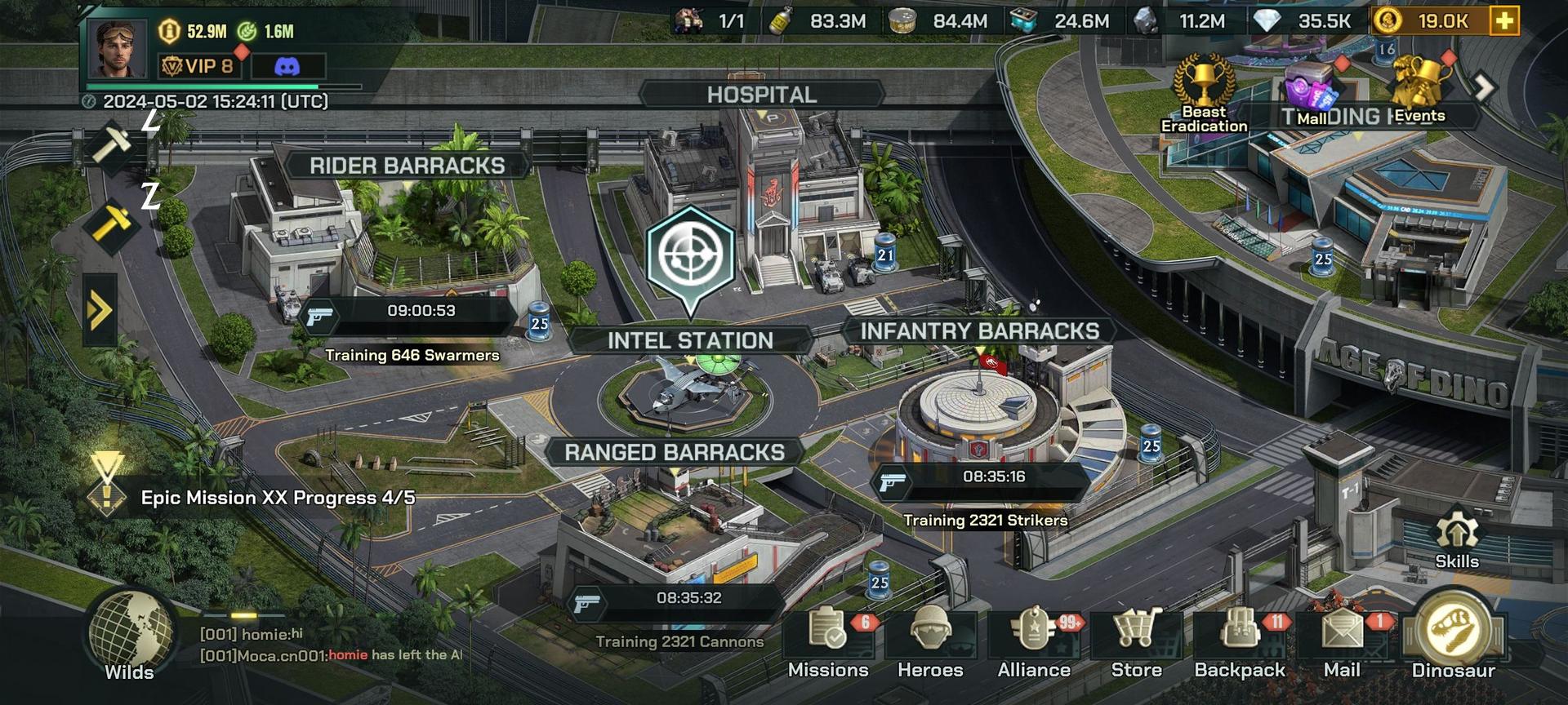 Como se explica en nuestra guía para principiantes de Age of Dino, la jugabilidad principal implica mejorar continuamente las estadísticas de tu comandante y expandir tu base. Esto incluye la gestión del Cuartel General, un elemento básico en los videojuegos de gestión de recursos. Además, hay edificios militares donde puedes entrenar varios tipos de tropas para diferentes misiones, como recolectar recursos o lanzar ataques a las bases de otros jugadores.