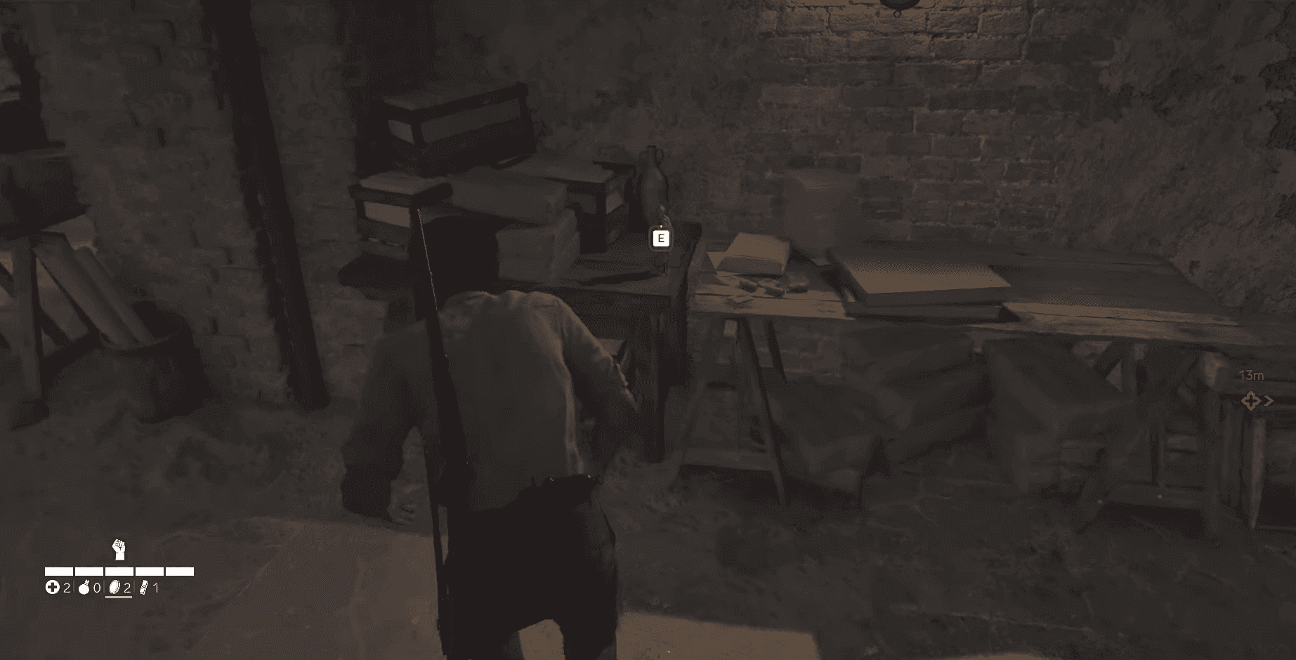 Despeja todo el sótano sistemáticamente: moviéndote de la mesa derecha a la mesa izquierda y al pilar de la puerta te asegurarás de no perderte ningún objeto.