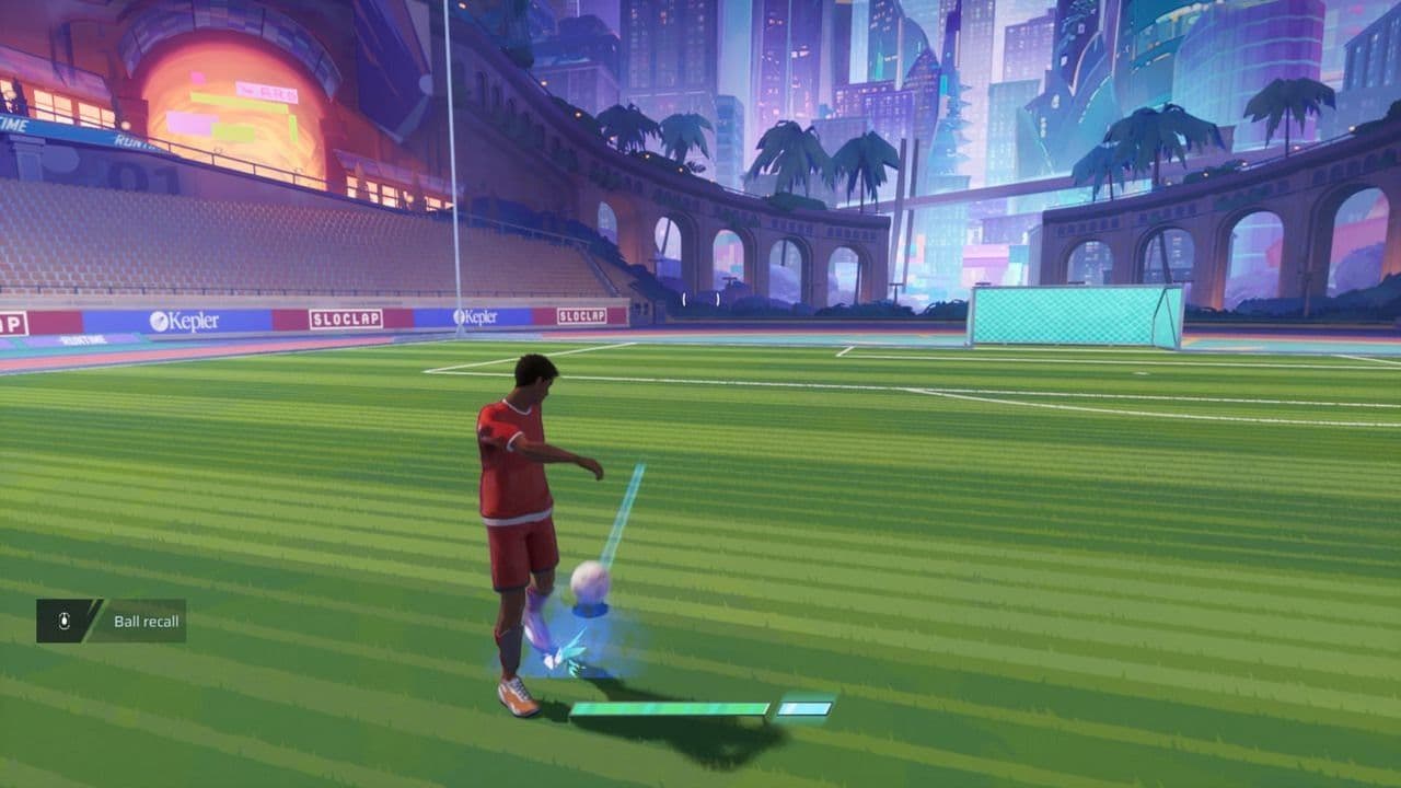 Para evitar esto, puedes soltar manualmente el control del balón presionando A en los controles de Xbox o X en los controles de PlayStation. Al hacerlo, el balón se desprende de tu jugador, entrando en un estado libre donde rueda hacia adelante pero mantiene a tu jugador a salvo de las entradas deslizantes. Esta mecánica crea un equilibrio importante: poseer el balón te da poder ofensivo, pero te convierte en un objetivo, mientras que soltarlo te da movilidad y protección.