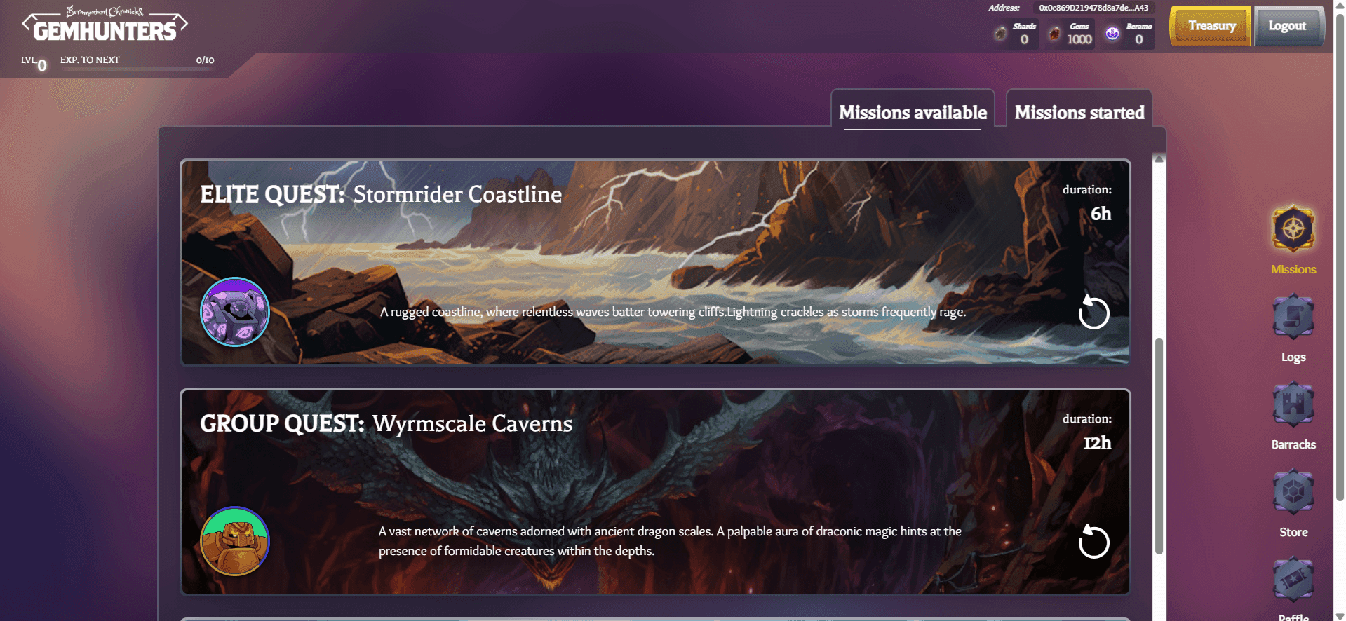Gemhunters is a mix of idle gameplay with RPG-style strategy, where players send their Beras—Cubs, Braves, or Genesis variants—on missions to earn loot, gear, and a resource called Gems. Once you log in, you’ll start with four free Cubs if you’re playing the free-to-play version. But if you stake your Beramonium Genesis NFTs, you unlock access to deeper rewards and higher-tier missions.