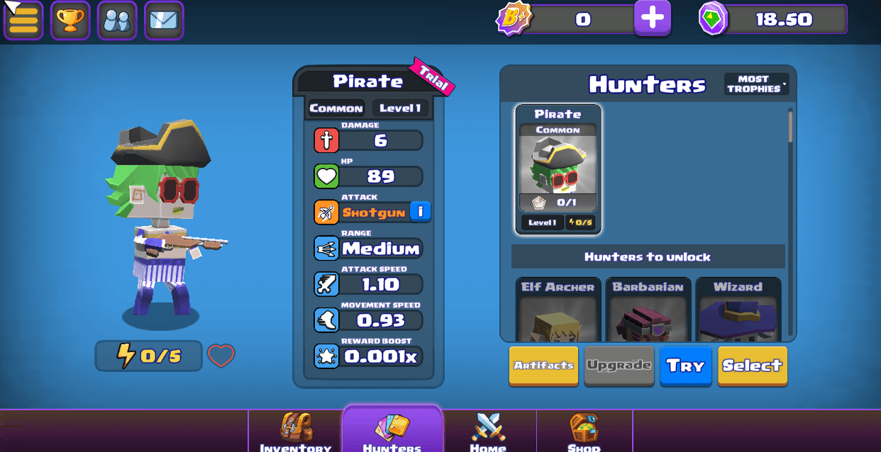 As you get ready for the game, start by picking a hunter class that suits your preferred playstyle. You might want a high-HP tank that charges into enemies or a long-range mage that can take out multiple foes from afar. Experiment with different hunter classes until you find your favorite. Once you have a preferred hunter, learn its stats, including attack range, base attack speed, HP, and other attributes. These stats will influence the power-ups you choose as you level up. For example, if you play as a long-range sniper, you may want to choose power-ups that enhance your survivability and mobility, such as increased movement speed or stuns on your attacks.