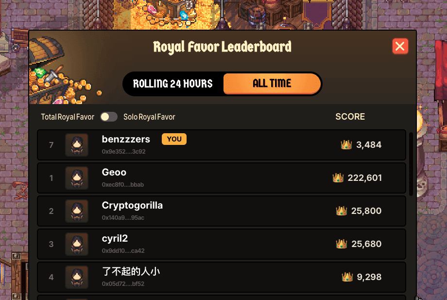 Royal Favor memainkan peran penting dalam membuka hadiah yang lebih signifikan. Saat pemain mengumpulkan lebih banyak RF, mereka mendapatkan Bribes pasif, yang tampaknya berfungsi sebagai bentuk insentif untuk terus maju. Dengan RF dan Bribes ini, pemain dapat membuka hadiah tambahan seperti Trinkets, Land Tickets, Airdrop Points, dan entri ke undian. Bahkan ada kemungkinan untuk mencetak Land NFT, jika Anda menang dalam undian.