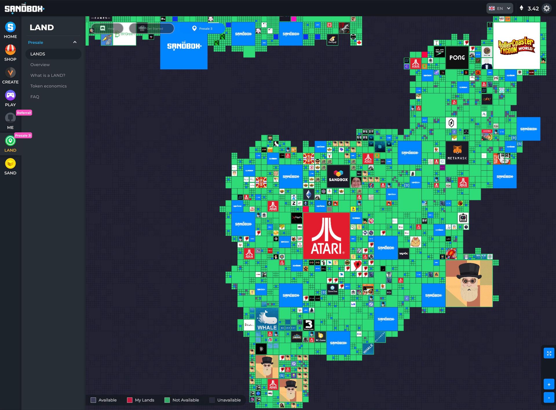 Meskipun The Sandbox gratis untuk dimainkan, mereka yang ingin membuat dan menerbitkan experience mereka sendiri dapat mempertimbangkan untuk membeli LAND. Game ini memiliki lebih dari 150.000 plot LAND, yang dapat digunakan untuk membangun dunia virtual, menyelenggarakan acara, atau membuat hub sosial. Namun, kepemilikan LAND sepenuhnya opsional, pemain masih dapat menikmati menjelajahi dunia luas konten UGC tanpa perlu memiliki LAND. LAND terutama untuk mereka yang ingin secara aktif berkontribusi pada metaverse dengan mengembangkan experience kustom mereka sendiri.