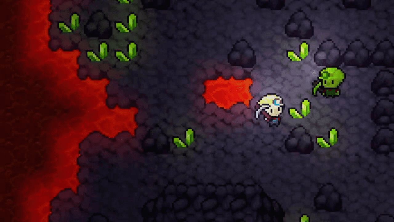 I goblin vagano per la mappa e ti inseguiranno se ti individuano. Le piastrelle di lava sono morte istantanea. Qui non si combatte con le spade. Se vuoi abbattere un goblin, dovrai usare la TNT.