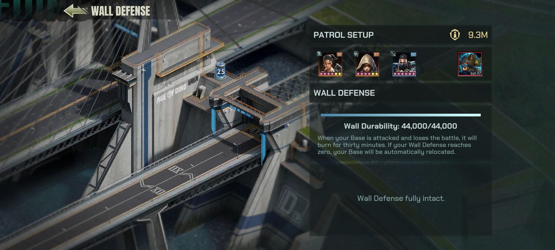 防御:基地の防御は比較的簡単で、部隊のパワーと基地の「壁」を中心に展開されます。これらの壁には、侵入者から防御するためにヒーローと恐竜を配置できます。防御には最高のヒーローと恐竜を配置することが重要です。前述のように、エネルギーシールドを購入して、シールドの持続時間中、偵察と攻撃を完全に回避することもできます。