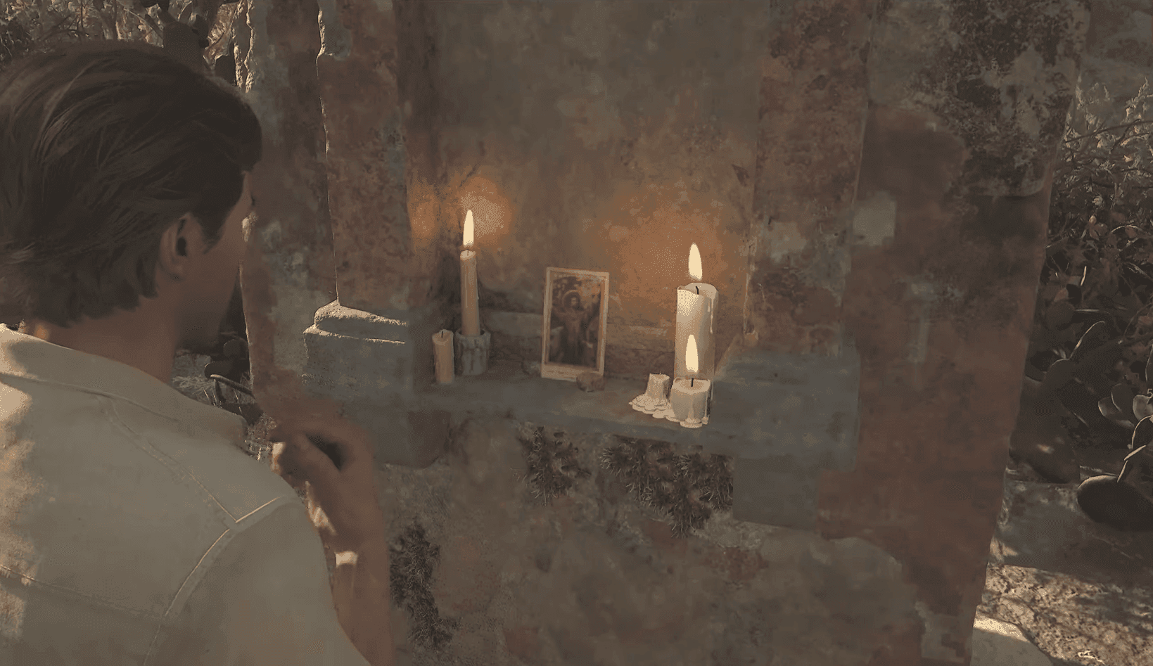 Navigate west from your starting position to locate the ornate altar. The Saint Card rests ceremoniously on the religious structure, offering both spiritual significance and gameplay benefits.