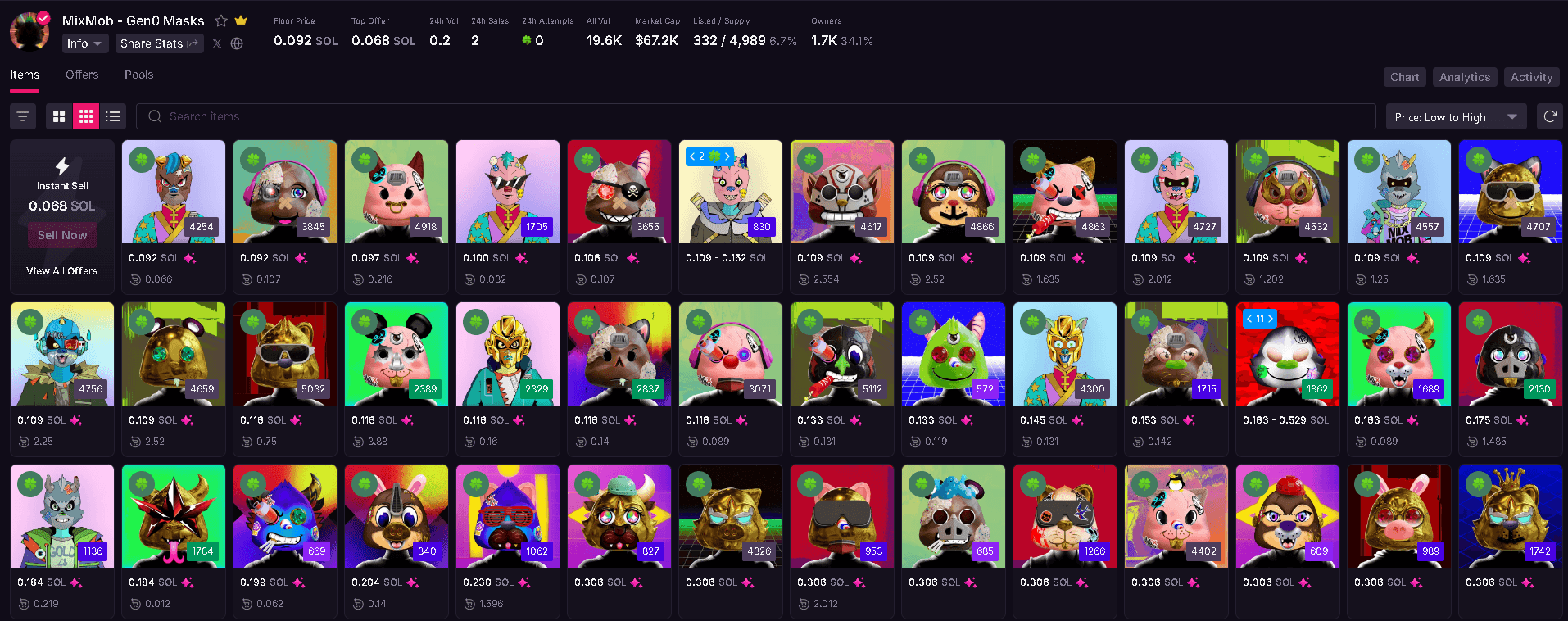 MixMob offers optional features for players interested in asset ownership and expanded progression systems. One such feature includes Gen0 MixBots and Masks, which are limited-edition items that offer additional customization and gameplay perks. These items are available through partnered platforms and can serve as status symbols or gameplay enhancements.
