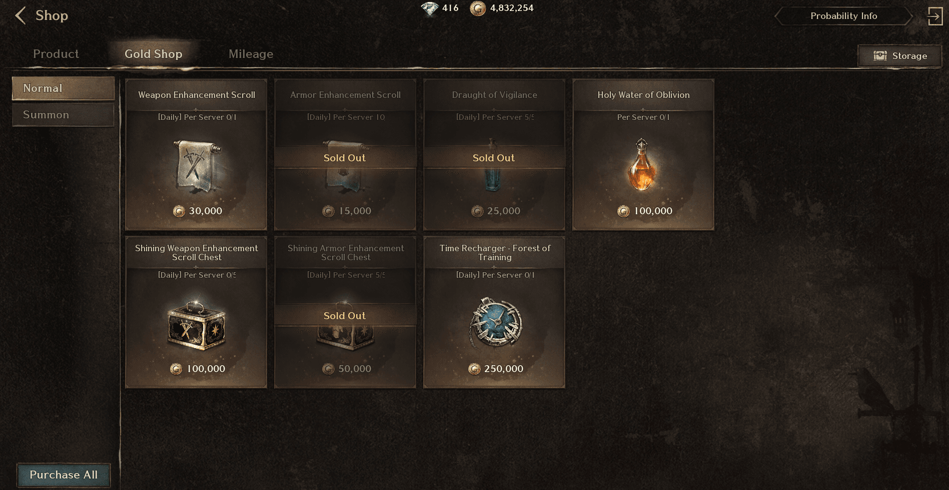 The Gold Shop offers useful items and summons in exchange for gold. As part of your daily routine, make sure to purchase most of the items you need, and consider buying everything from the summon shop.