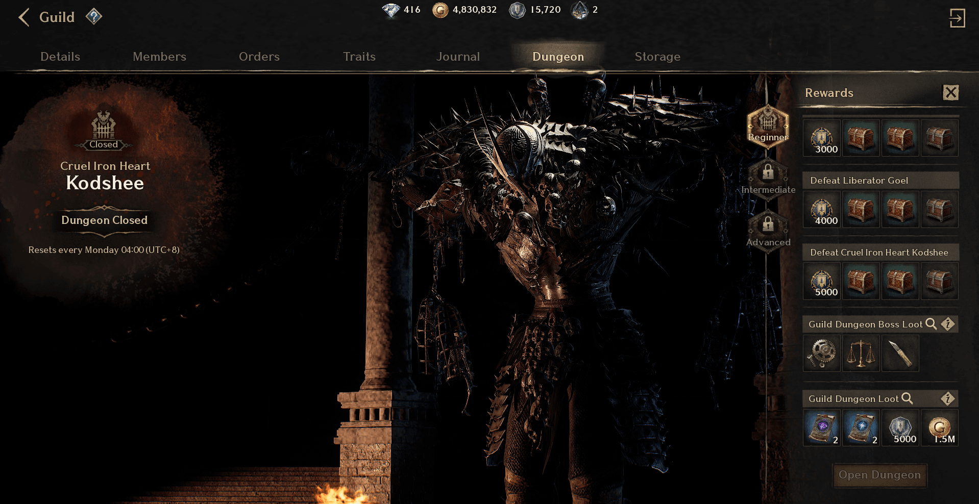 Another fundamental gameplay mechanic for Guilds is the Weekly Boss Dungeons. In these dungeons, all members of the Guild can participate and battle through a series of Boss Fights to secure valuable loot. A key strategy in Boss Fights is to form parties that include a healer. The bosses possess very high HP, making it necessary for the entire guild, potentially up to 50 players, to regroup and collaborate to clear the dungeon. Additionally, certain loot drops, such as gold, can be distributed by the Guild owner to all of its members.