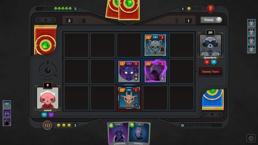 Het speelbord bevat tegelvakken voor gevechtseenheden, een deck voor het trekken van kaarten en een zichtbaar kerkhof voor gebruikte kaarten. Eenheden behoren tot een van de drie klassen: Corporeal, Intellectual of Ethereal, elk met unieke sterke en zwakke punten. Vakken kunnen aanvals- of verdedigingstorens hebben om de toegebrachte schade te vergroten of meer schade te weerstaan. Barrières kunnen ook op vakken worden geplaatst, waardoor de tegenstander geen eenheden daar kan plaatsen en aanvallen worden geblokkeerd door het zicht van het doelwit te belemmeren.