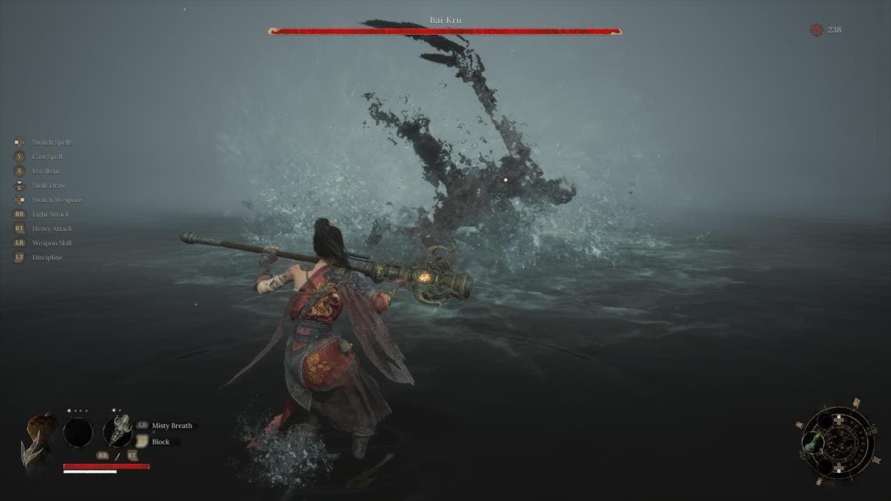 - Strategie: Deze baas is een goede vroege test van geduld en beweging. Bai Kru gebruikt snelle sprongen en waterprojectielen. Blijf altijd aan de flanken of achter hem; zijn draaisnelheid is traag en frontale aanvallen zijn riskant. Wanneer hij een waterstraal schiet, ontwijk zijwaarts en land een volledige combo terwijl hij vastzit in de animatie. Wees niet te hebzuchtig; twee treffers per venster is ideaal.
