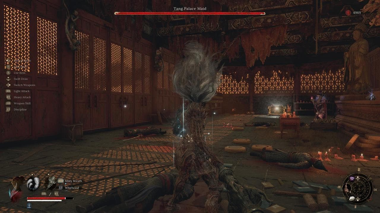 - Strategie: Als je Nian Suichang hebt ontmoet, roep hem dan op voor een enorm voordeel. Hij leidt de baas af terwijl jij spreuken uitspreekt of van achteren aanvalt. Solo wordt dit gevecht een dans van het ontwijken van Corruption-projectielen in een krappe ruimte. Rust magisch-resistente bepantsering uit en zoek naar openingen na elke salvo van magische aanvallen.