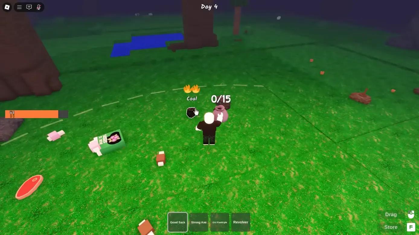 A progressão em 99 Nights in the Forest gira em torno do ciclo dia-noite. Cada dia dura apenas alguns minutos, e cada noite vira uma batalha pela sobrevivência. A fogueira é sua linha de vida: fique perto da sua luz para afastar o Deer, um monstro parecido com um wendigo que caça os sobreviventes depois do anoitecer.
