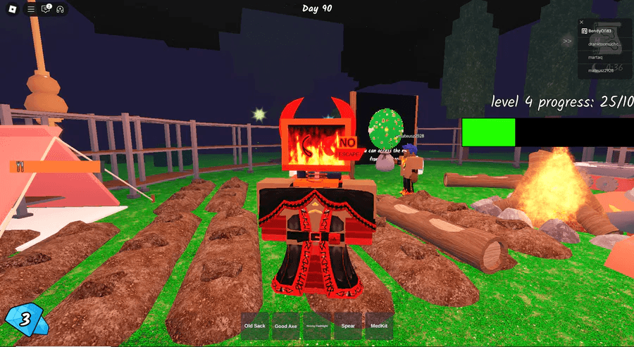 O jogo captura a essência do survival: farme recursos durante o dia, defenda seu acampamento à noite e avance junto com o time até o Dia 99. Para os jogadores que curtem uma mistura de estratégia, trabalho em equipe e sustos, esse é um dos experiences de survival mais viciantes do Roblox — e vale muito a pena zerou!
