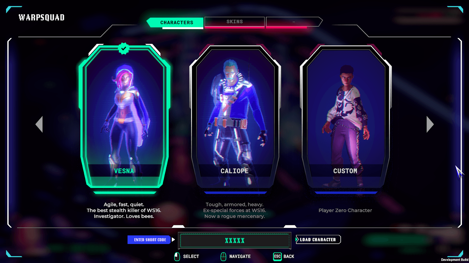 Os jogadores podem criar personagens customizados através do Player Zero, linkando-os ao jogo via códigos, ou escolher personagens pré-definidos como Vesna (uma assassina focada em stealth) e Caliope (uma lutadora pesada e durável). Essa flexibilidade permite tanto a personalização quanto estratégias baseadas em papéis.