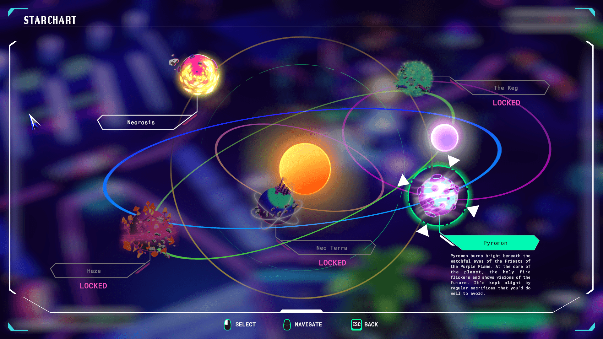Cada planeta apresenta perigos e recompensas únicas. Completar desafios planetários concede dados de dobra, que podem ser usados para upgrades e abrem caminhos para futuros planetas como Neo-Terra e The Keg.