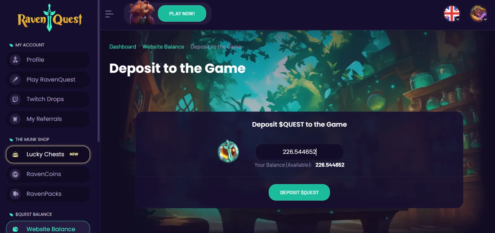 Step 2: Deposit $QUEST into Your RavenQuest Account