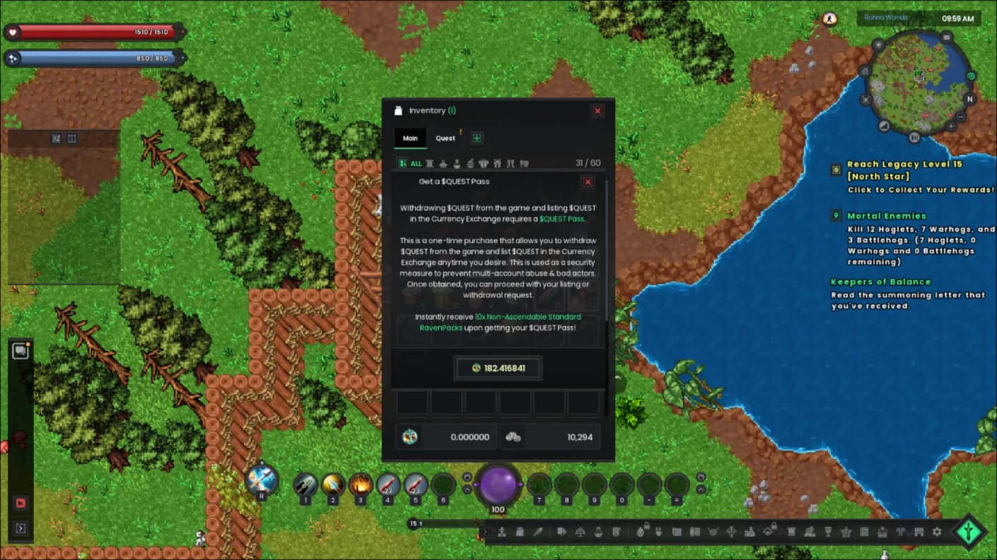 That was a grind, but you're almost there. Now that you’ve funded your in-game account with enough $QUEST to buy the Withdraw Pass, go ahead and purchase it. Once confirmed, the pass is permanently active, giving you the freedom to withdraw $QUEST anytime.