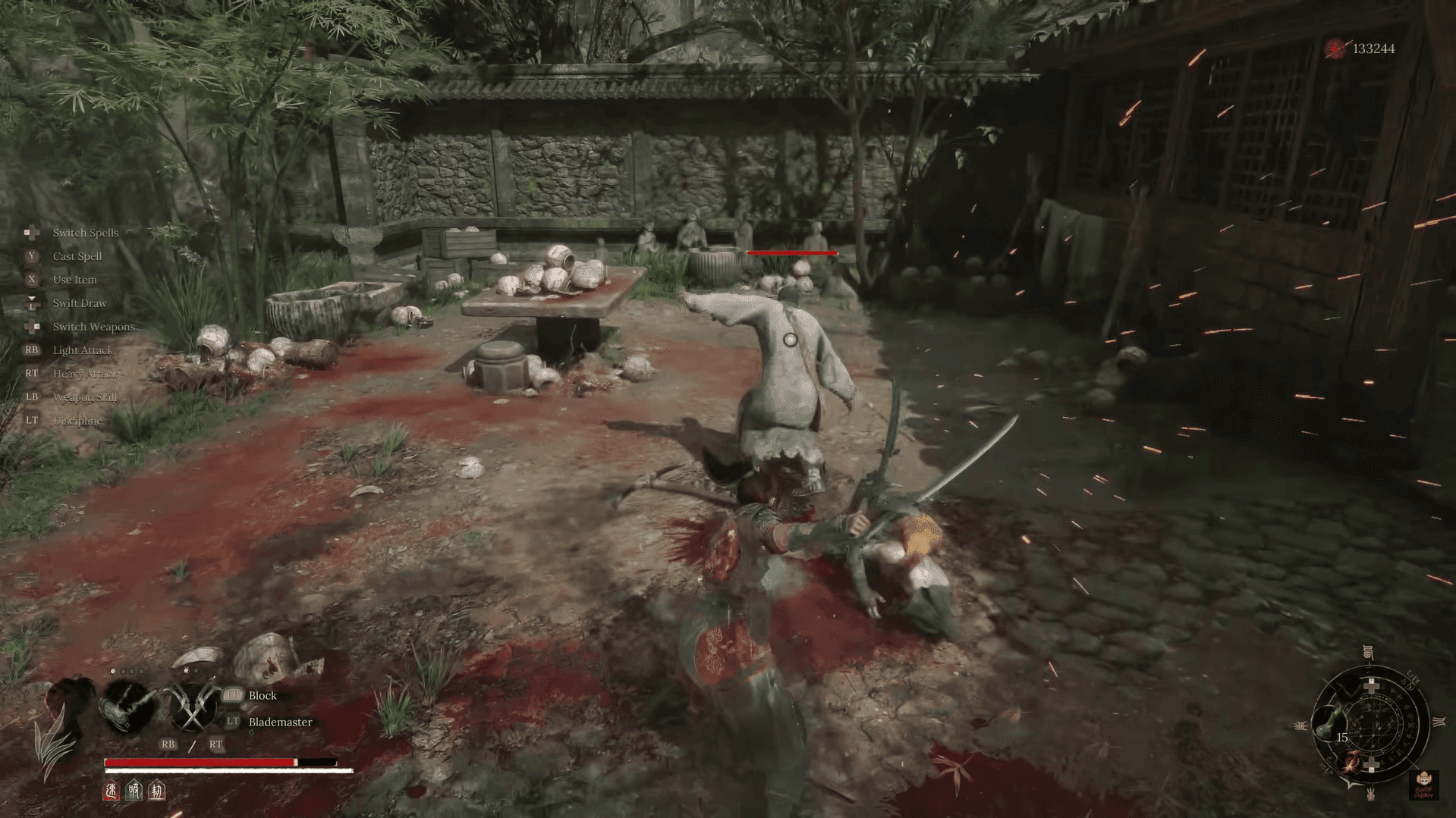 Dual blades feature a deflect system that functions more like parrying than traditional blocking. Time your Left Bumper press as enemy weapons connect to deflect attacks and trigger follow-up opportunities.