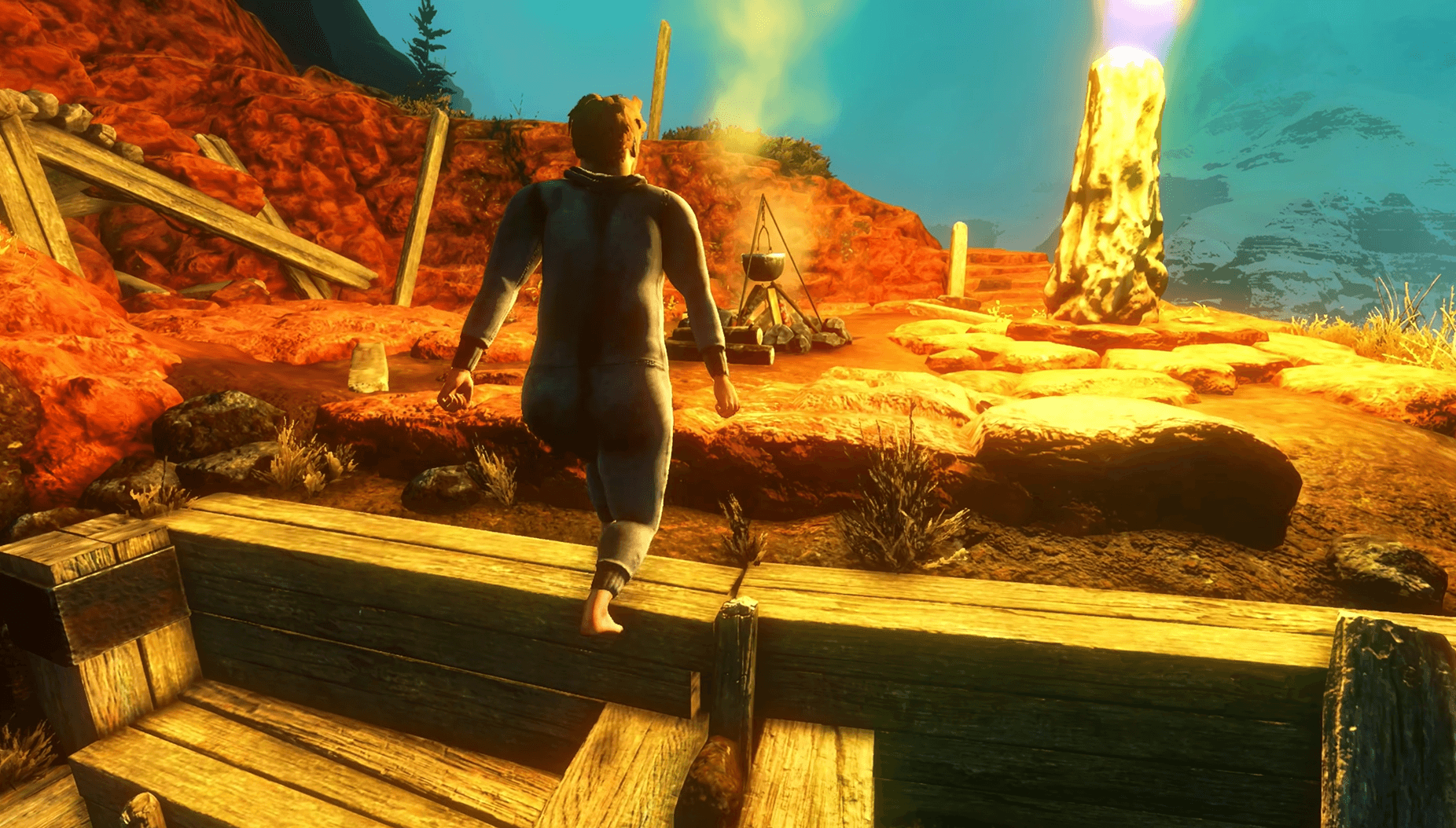 《Baby Steps》的魅力在于其刻意笨拙的物理引擎,让每一次移动都感觉像是你第一次学走路。与传统游戏中即时精确的移动不同,在这里你需要仔细协调每一步,以保持平衡和动量。