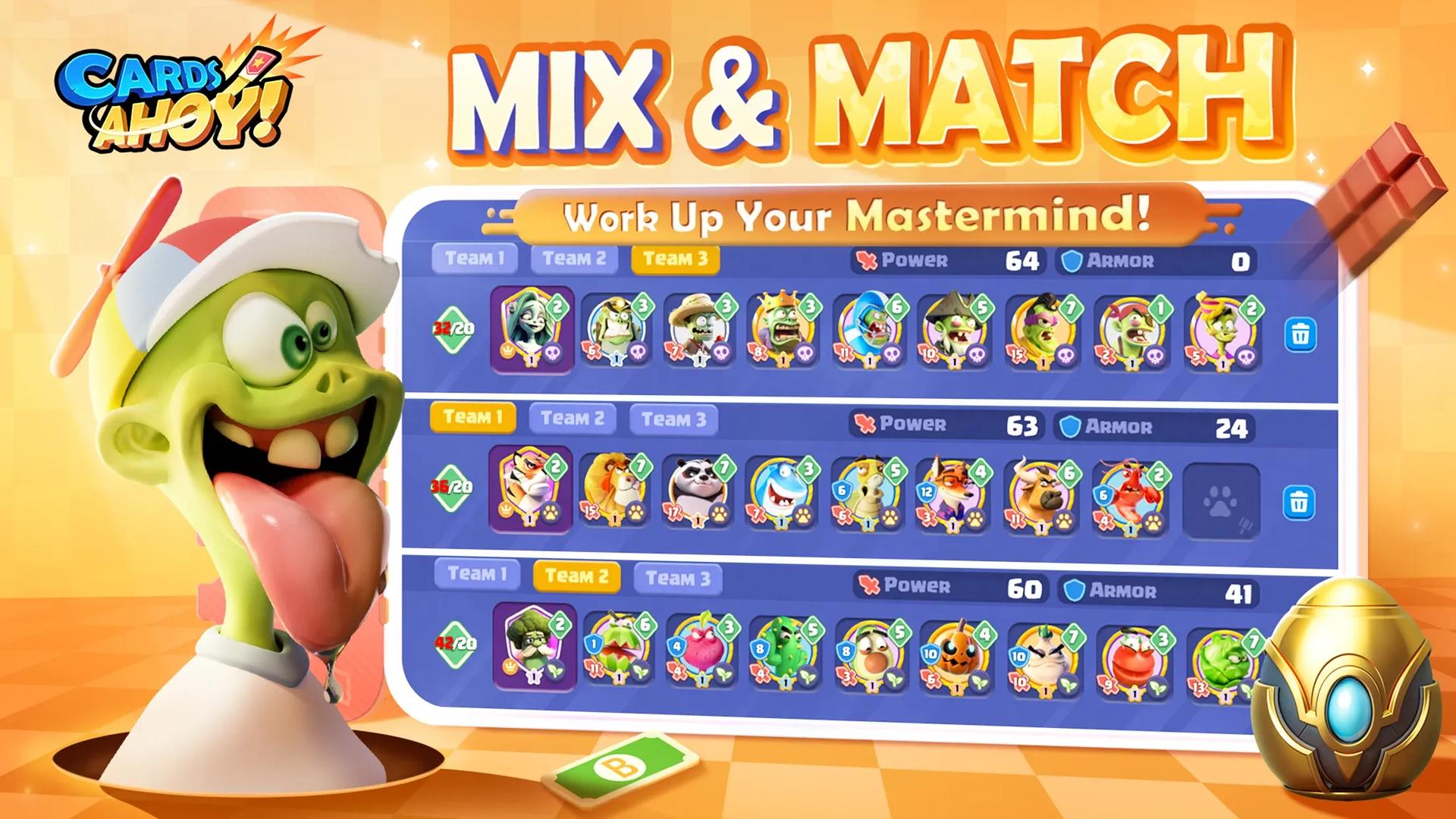 《Cards Ahoy!》主打60秒PvP对战,玩法直接且引人入胜。你可以随时加入游戏,与全球玩家一较高下。对战规则简单易懂:每张卡牌都有一个战力值,当卡牌碰撞时,它们的战力值会下降,直到其中一方被击败。你还可以调整对战速度,以适应自己的风格,快速进入下一场比赛。
