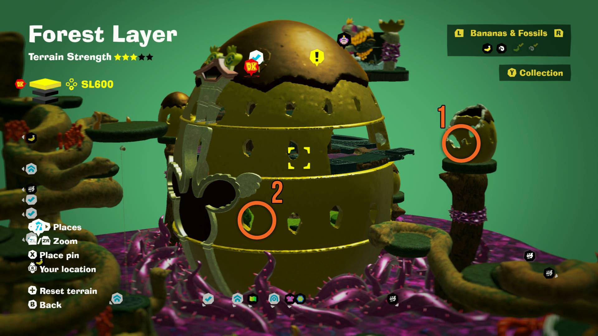 变形是游戏的关键,通过将“古代记录”归还给特定地层中的长老来解锁。从泻湖(SL101)的“Kong Bananza”开始:增强力量,轻松破坏地形并使用蓄力 Y 攻击。接下来,在“分界线”选择路径,获得“Zebra Bananza”(冰冻,SL501)用于在水或泥浆上快速冲刺,或“Ostrich Bananza”(森林,SL600)用于滑翔和投掷蛋炸弹。
