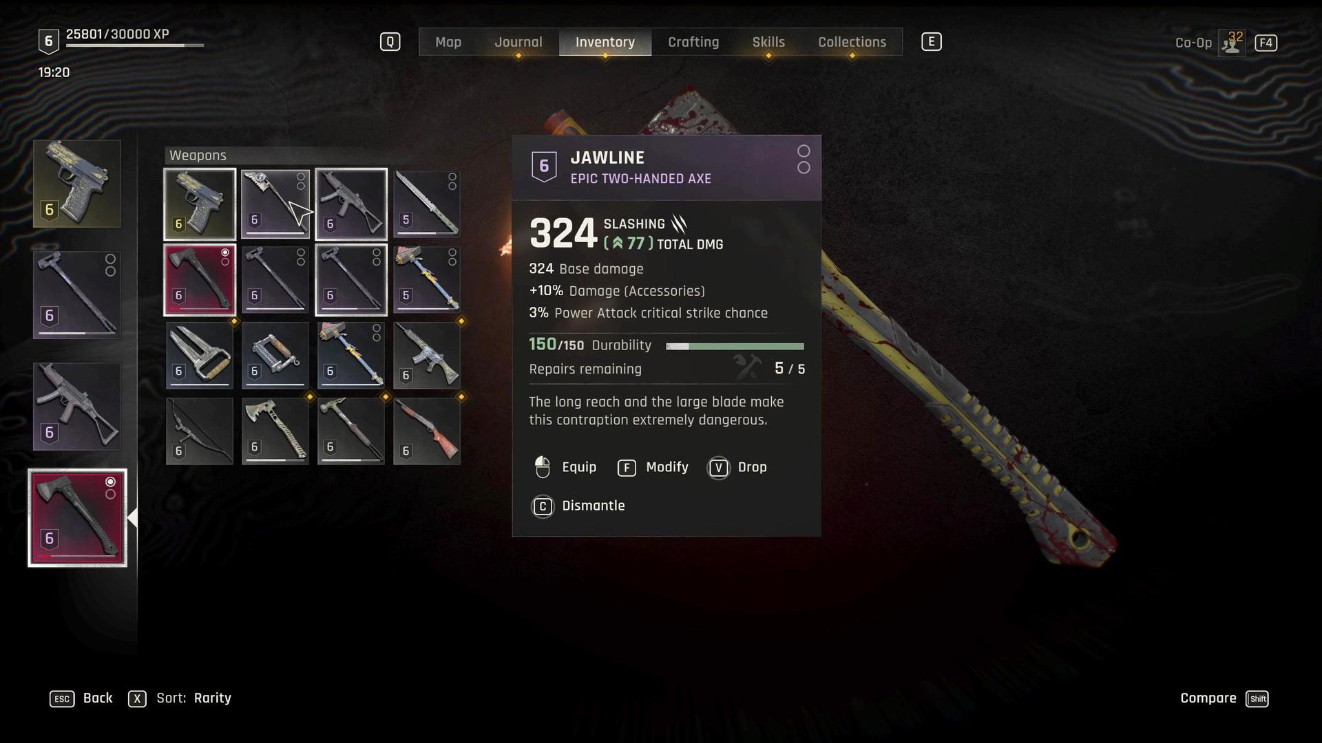 每把近战武器都会在使用中磨损,但你可以通过武器轮盘或物品栏使用废料进行修理。低级武器损坏频繁但维护成本较低,而像“鹅”这样的史诗级武器则更耐用,但需要高级资源。