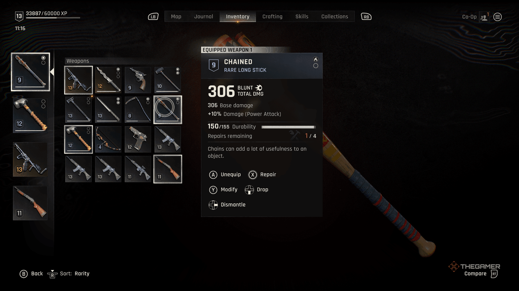 - 将光标悬停在损坏的武器上