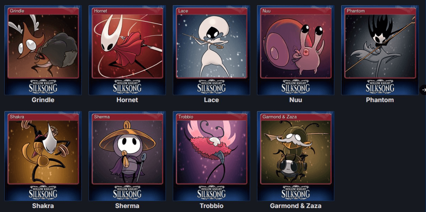 确认有超过40场Boss战,《丝之歌》似乎加倍强调了使《空洞骑士》闻名遐迩的难忘战斗。预览的遭遇包括: