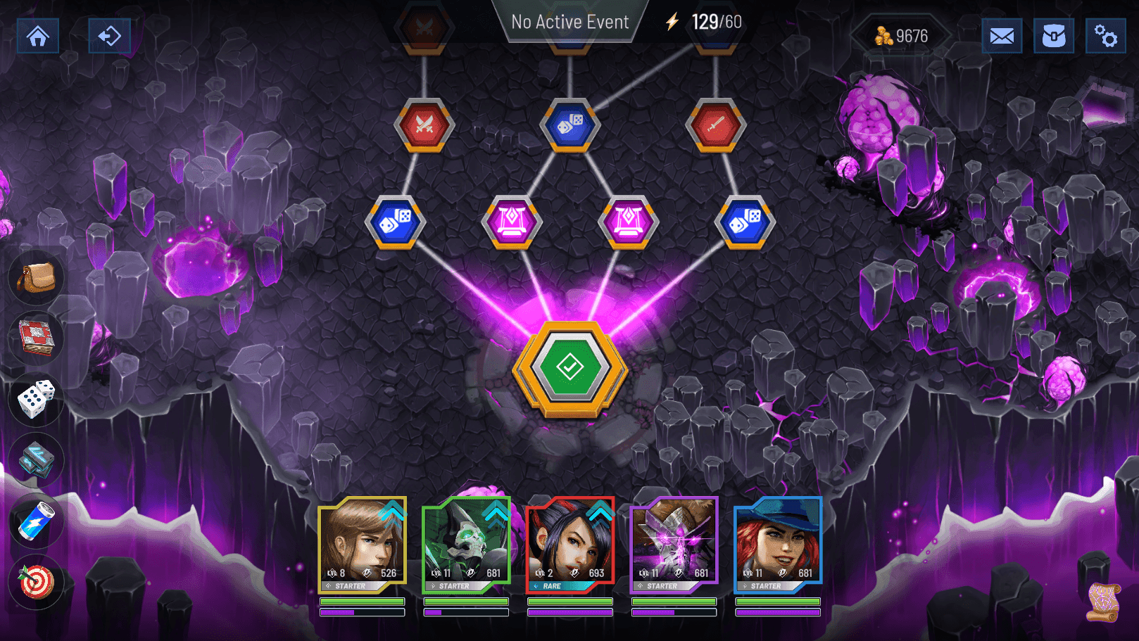 在 Legendary Heroes Unchained (LHU) 中,玩家组建英雄团队,探索充满挑战和奖励的地牢。游戏涉及在一系列方块中移动,每个方块都提供不同的选项。有些方块有不同难度级别的战斗,而另一些则提供增益、赌博奖励的机会,或者玩家可以用游戏内金币购买物品的商人。在方块中移动或战斗时会消耗能量,玩家可以在战斗中消耗更多能量来增加英雄的攻击力。不玩游戏时,能量会随着时间缓慢恢复。