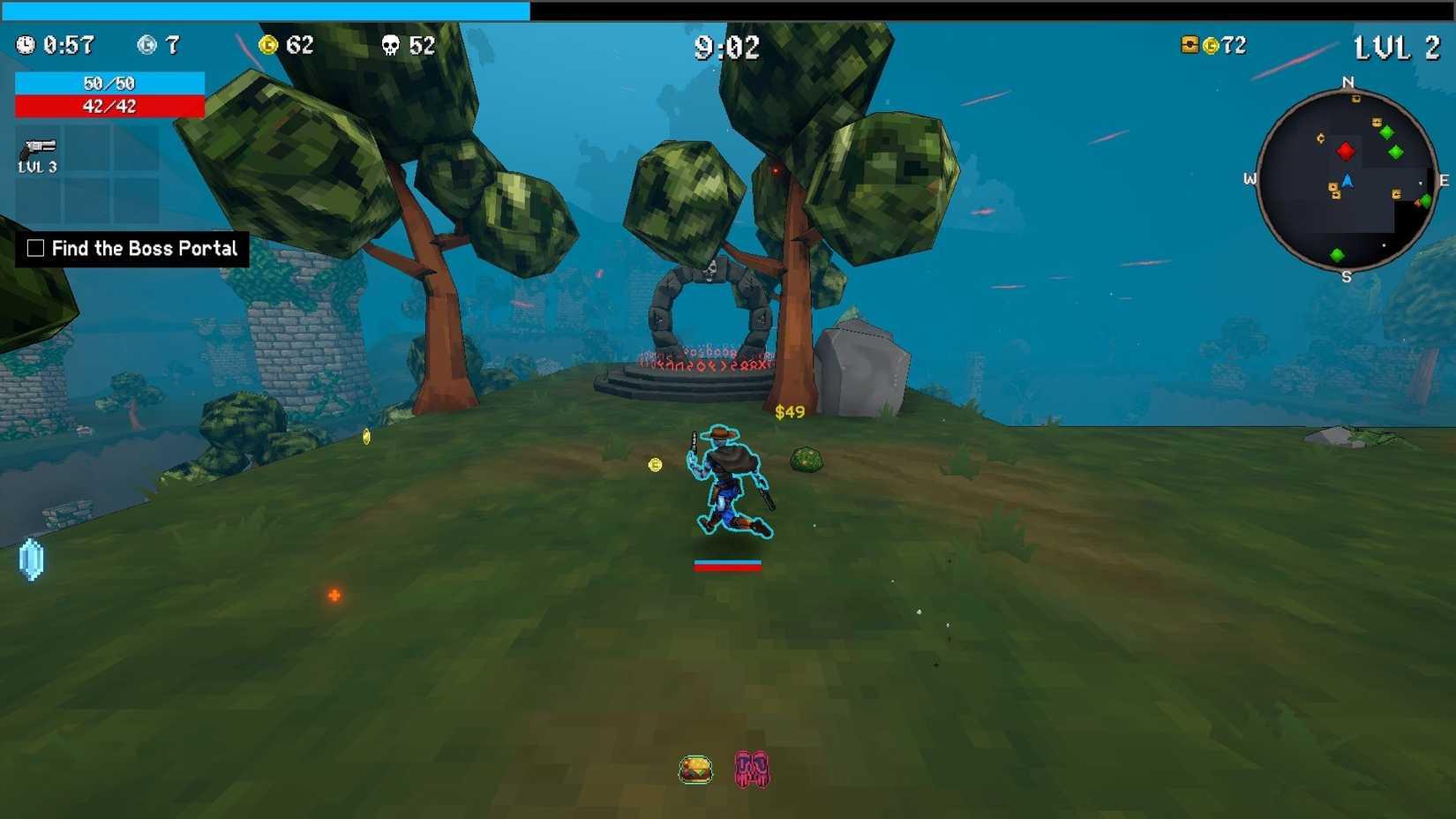 每个阶段都有一个由带有骷髅的拱门标记的Boss传送门。一旦被发现,它会以红色菱形显示在你的小地图上,但要尽早找到它需要积极探索。