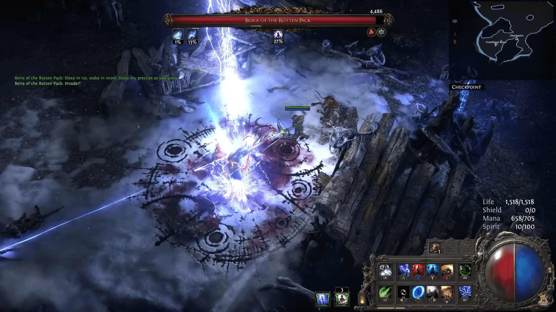 然而,这些优势被关键的缺点所掩盖。女巫的伤害输出严重依赖武器品质,这使得她对装备的依赖性极高。几乎完全依靠能量护盾进行防御,使她脆弱且容易暴毙。除此之外,她的装备在交易服中竞争激烈,因为大多数玩家都认识到其价值,从而推高了价格。如果没有强力的武器掉落,她的表现很快就会落后于其他职业,尽管注入系统前景光明,但它缺乏深度,无法让她成为一个稳定的开荒职业。