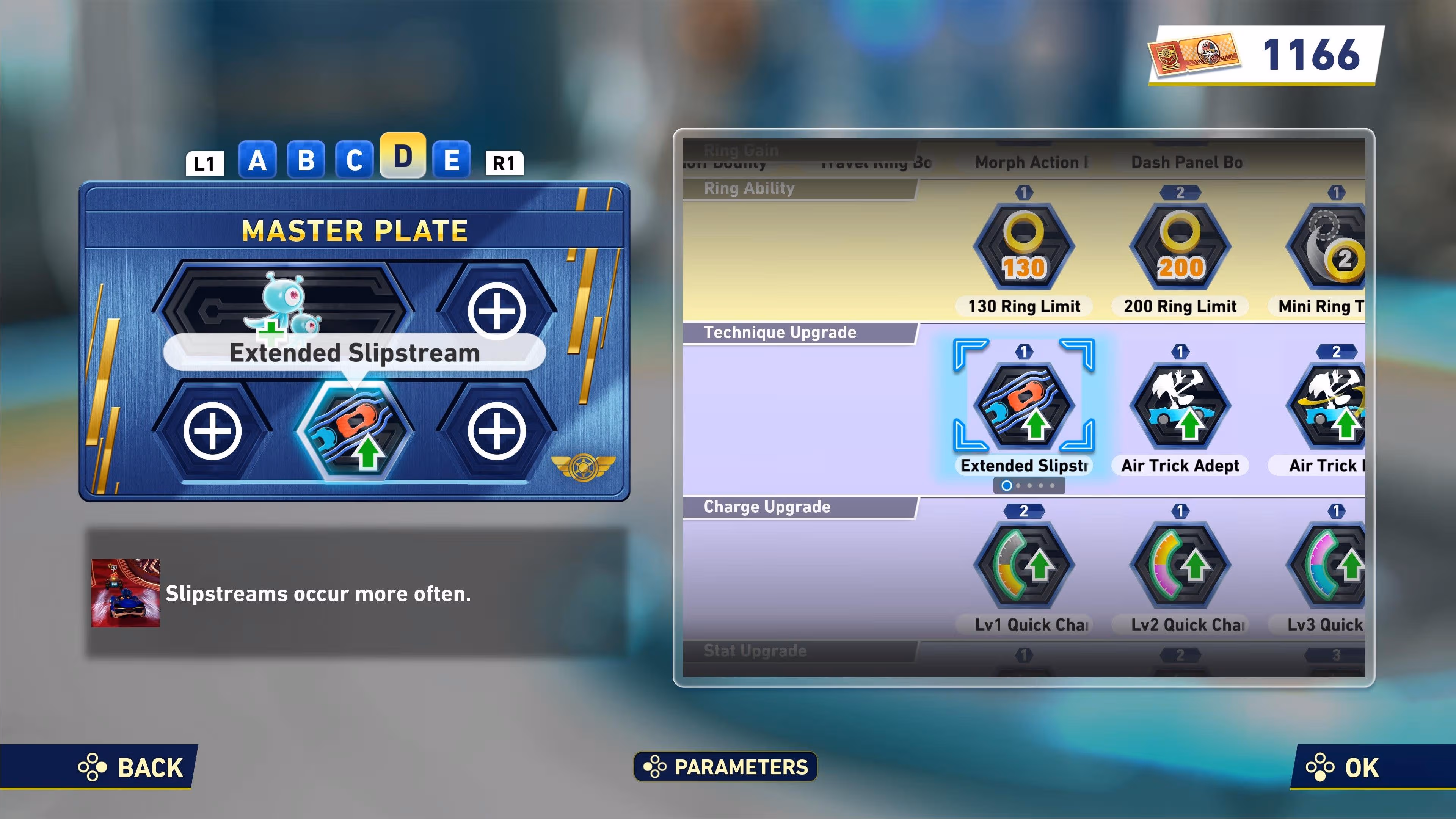 第四个槽位提供了即时速度(起始加速)或可持续圆环收入(空中特技)之间的灵活性。根据你的赛道知识和特技执行熟练度进行选择。