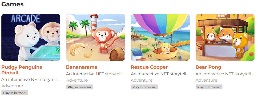 对于喜欢浏览器游戏的玩家,Itch.io 平台上有几款可供选择。其中包括 Pudgy Penguins Pinball、Bananarama、Rescue Cooper 和 Bear Pong。这些游戏都易于上手,提供短暂的娱乐,无需下载。