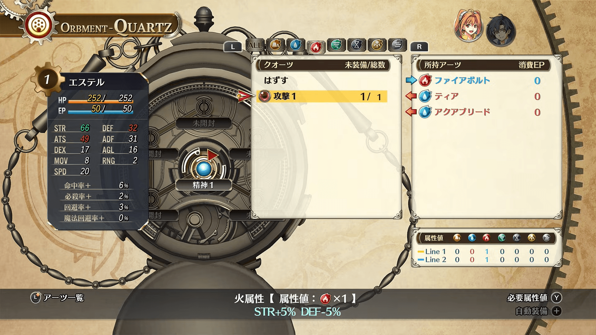 每个角色的回路器都包含连接特定插槽的元素线。艾丝蒂尔有两条线:一条蓝线(3个插槽)和一条橙线(4个插槽)。中央插槽同时计入两条线,这使得它对于魔法组合来说极其宝贵。
