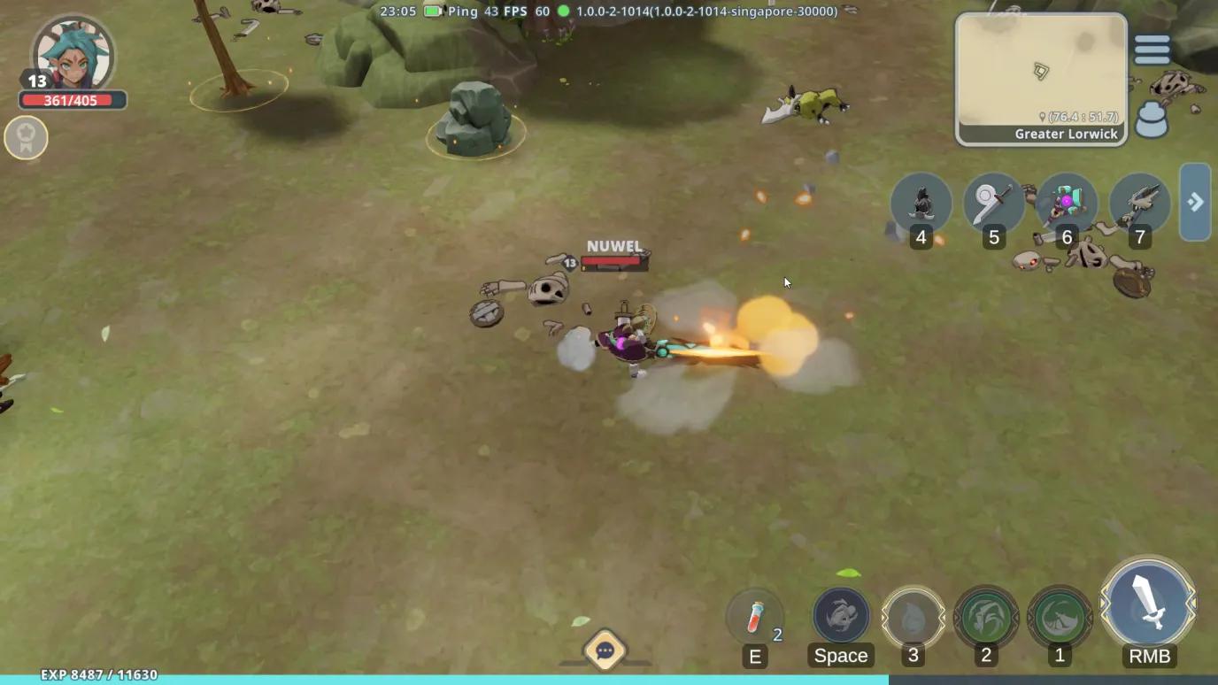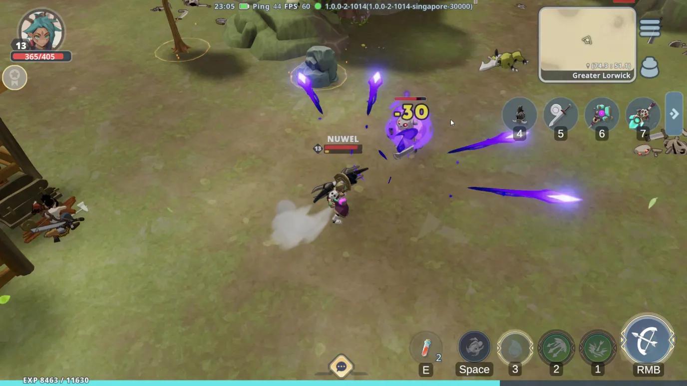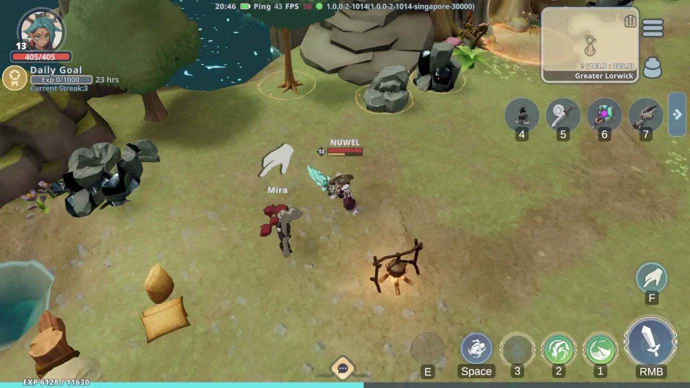 一开始,NPC Nicolo 将引导您了解制作武器和收集原木、金属矿石等资源的基础知识,这些都是大型多人在线角色扮演游戏的核心玩法元素。完成他的教程任务后,您就可以自由探索这个世界了。为了抢占先机,最好尽早完成所有可用的 NPC 支线任务。这些任务通常涉及收集基本资源或运送物品。为了优化您的时间,请打开地图(Lorwick Town)并查看 NPC 图标。有可用任务的 NPC 将显示彩色通知。在出发前尽可能多地接受任务,许多任务有相似的目标,让您可以同时推进多个任务。其中一个值得注意的任务是寻找 Mira。如果您找不到她,她就在 Lorwick Town 外地图的左上方,靠近一个篝火。