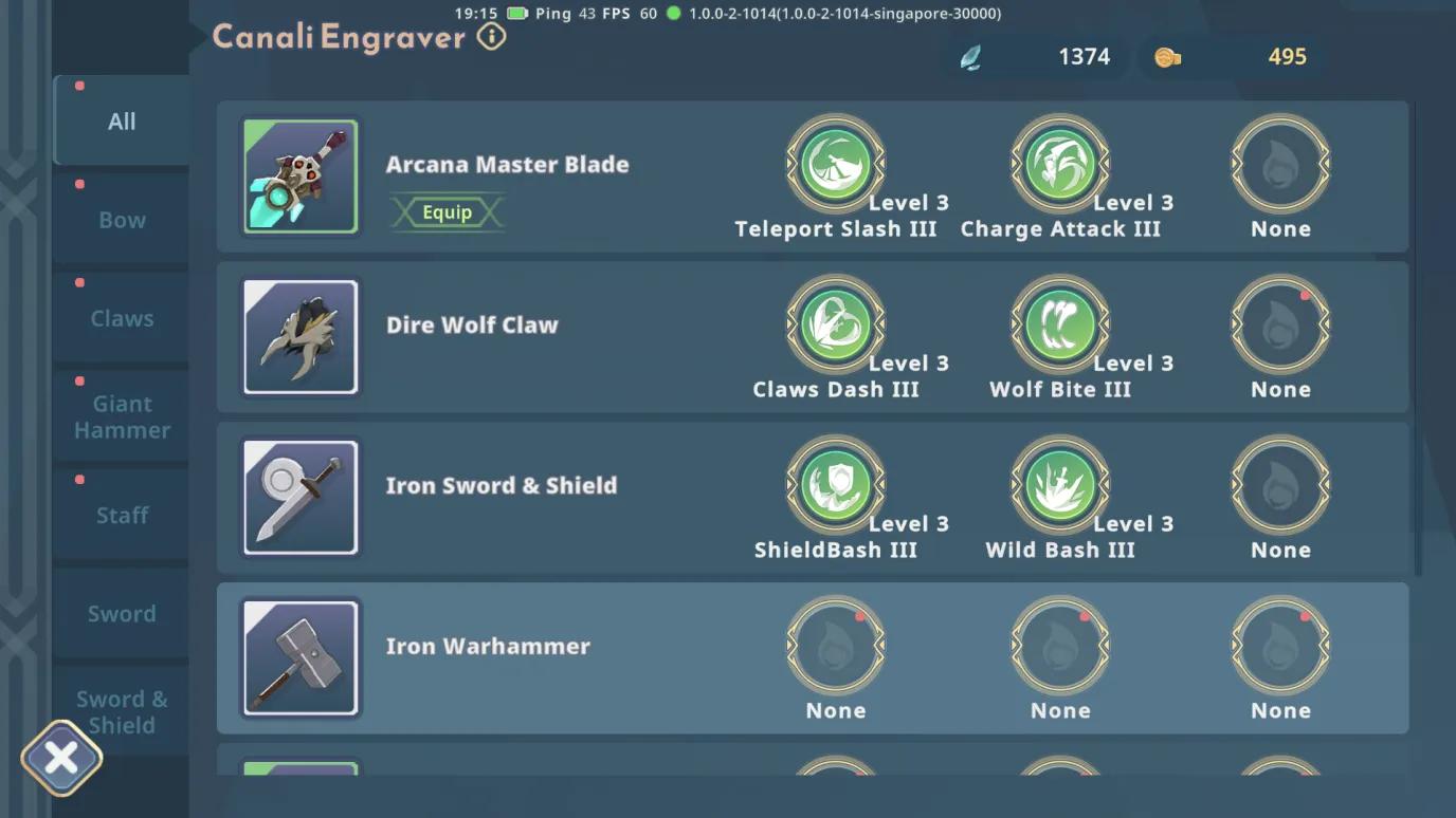 - 爪 – 爪专注于高攻击速度和机动性,使其成为快节奏战斗的理想选择。基本技能包括远程伤害冲刺和单目标爆发冲刺,可提供短暂的无敌时间。特殊技能包括高伤害远程斩击。这种武器最适合喜欢快速打击游戏风格的玩家,他们可以不断重新定位并穿插攻击。然而,其高速游戏玩法以较低的耐久度为代价,需要更熟练的方法。