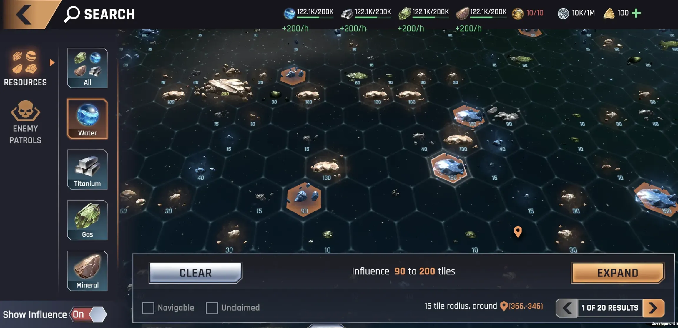 格子被分配用于特定的资源生产,例如水、气体、矿物或钛。每个格子上的影响力水平决定了你随时间获得的产量。如果你觊觎最好的格子,预计会遇到抵抗。有些格子受到防御,需要清除后才能占领。