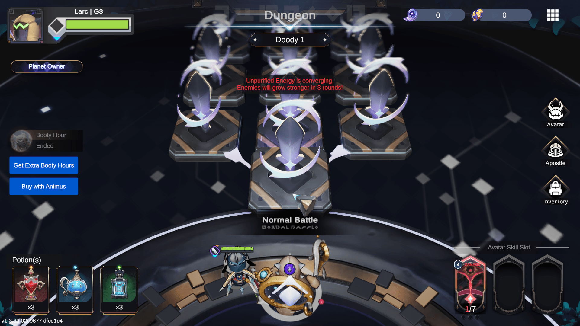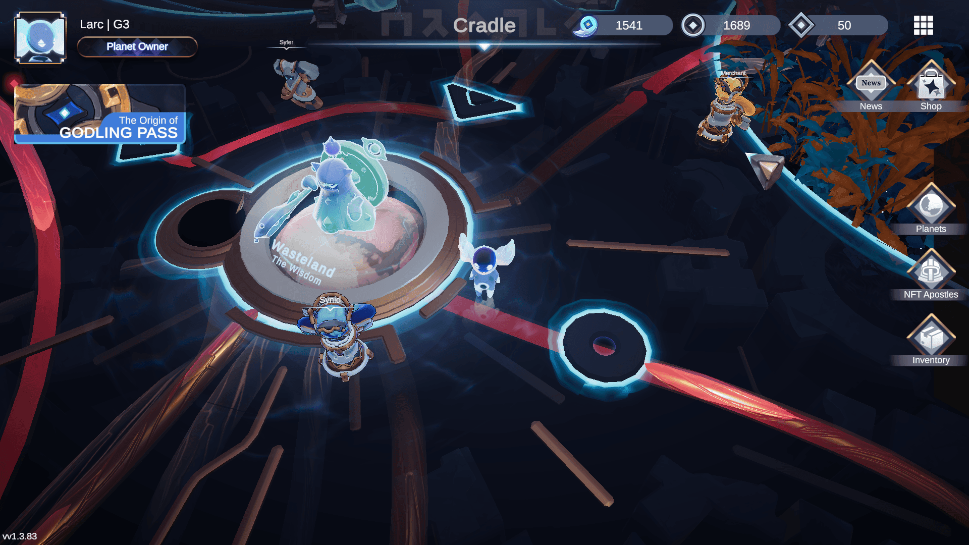 對於新玩家而言,遊戲會從一個易於理解的教學開始,介紹基本機制,例如操控化身、使用技能卡、了解使徒以及學習戰鬥方式。完成教學後,玩家將進入一個充滿 Doods 和其他 NPC 的中心區域,可以與之互動。這個中心區域作為主選單,玩家可以在此管理他們的星球(化身)、使徒,並進入遊戲模式。進入遊戲模式非常簡單,只需走向地城模式(PvE)或 PvP 競技場的傳送門即可。