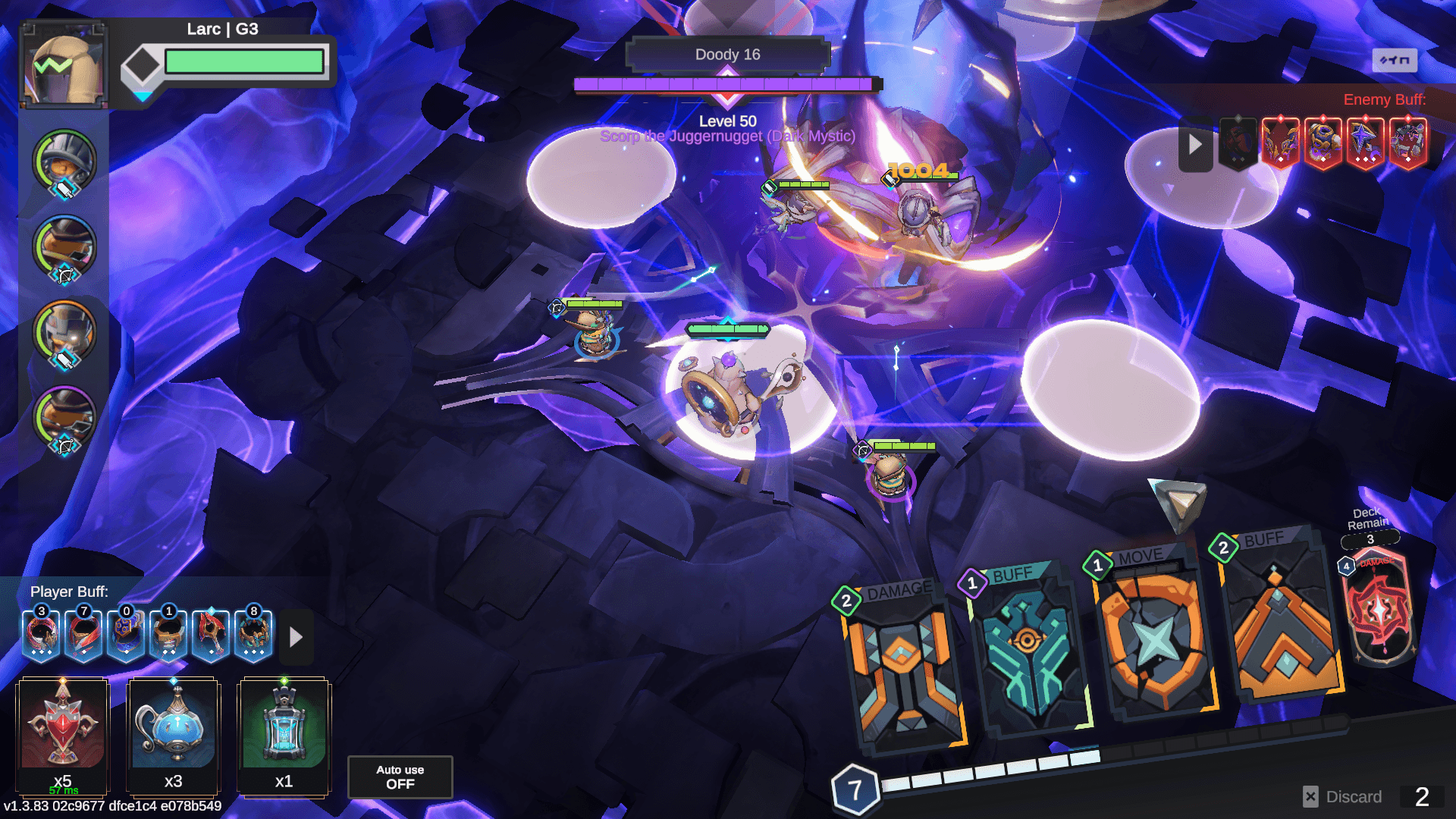 每次地城冒險開始時,玩家會為他們的化身選擇技能卡。這些卡片在整個地城中都可使用,並且在戰鬥中至關重要。選擇一個格子後,玩家會被帶到戰場,目標是生存並擊敗所有敵人。