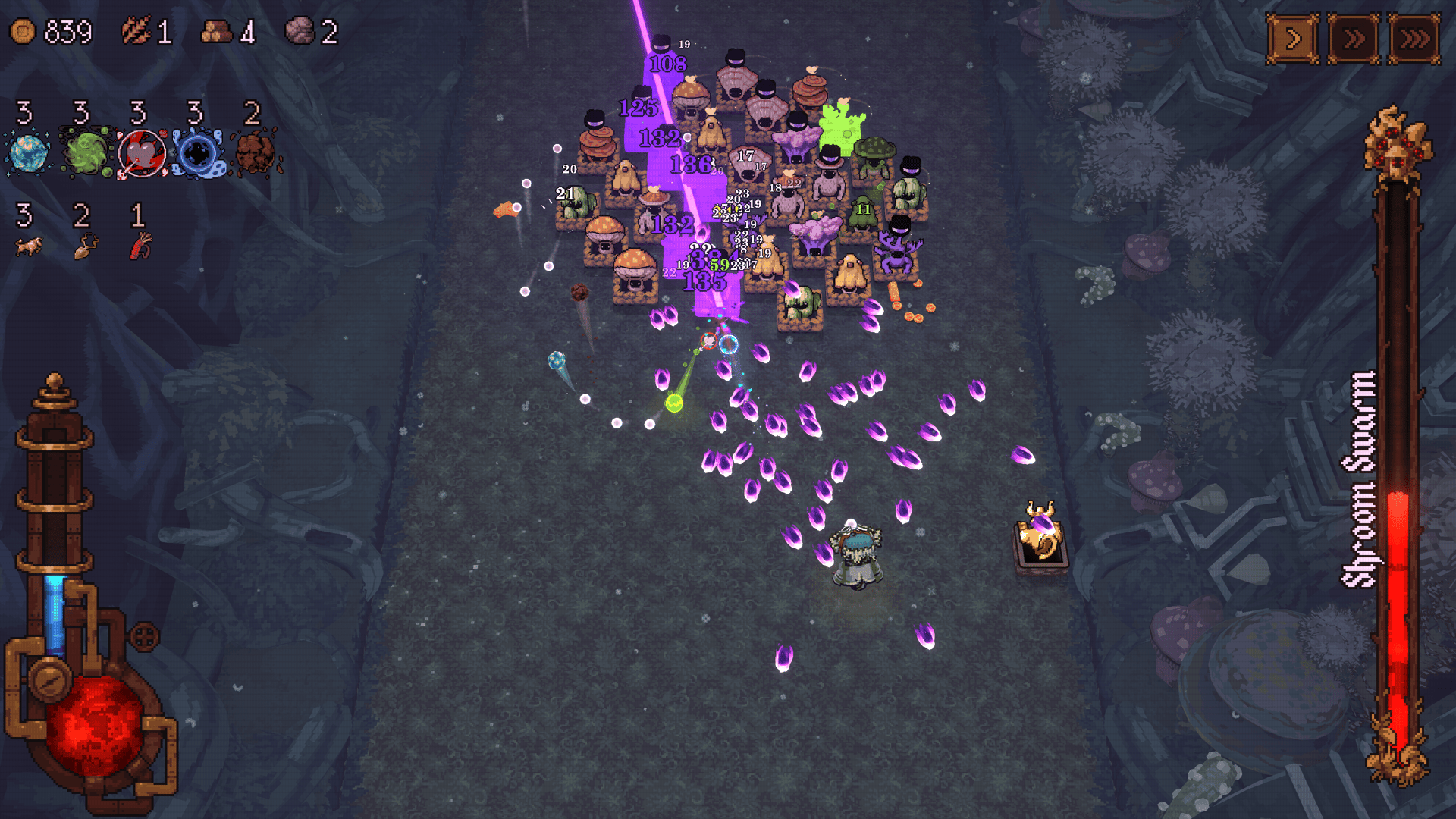 The Pitling 以其快速的經驗累積和早期融合能力而脫穎而出。這位角色能平滑遊戲進程曲線,讓你比其他英雄更快地達到強力的組合。其起始彈珠「流血」能提供持續的傷害,讓你在構建融合協同效應的同時,也能輕鬆應對早期關卡。