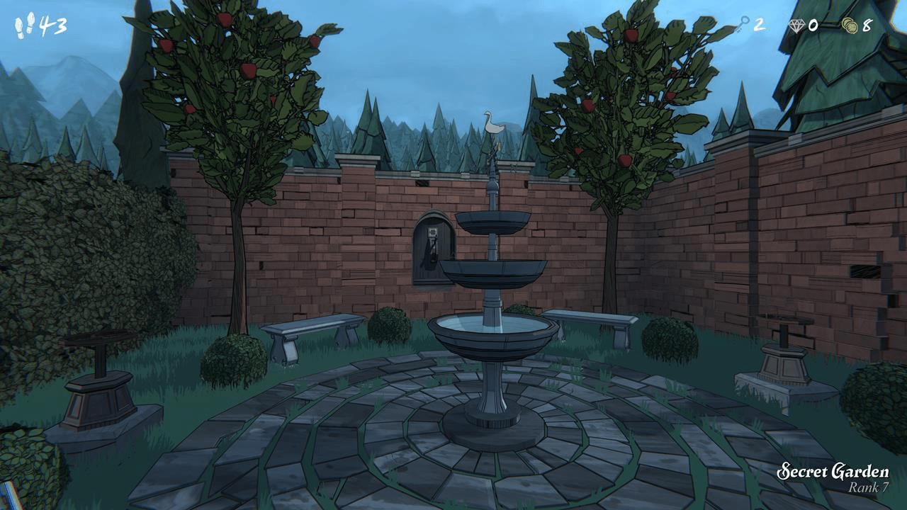 在第1或第5列的鎖著的門上使用鑰匙,即可揭示秘密花園。在花園內,使用附近的閥門調整三個風向標,直到所有箭頭都指向後牆雕像。這將揭示隱藏的西邊拉桿。