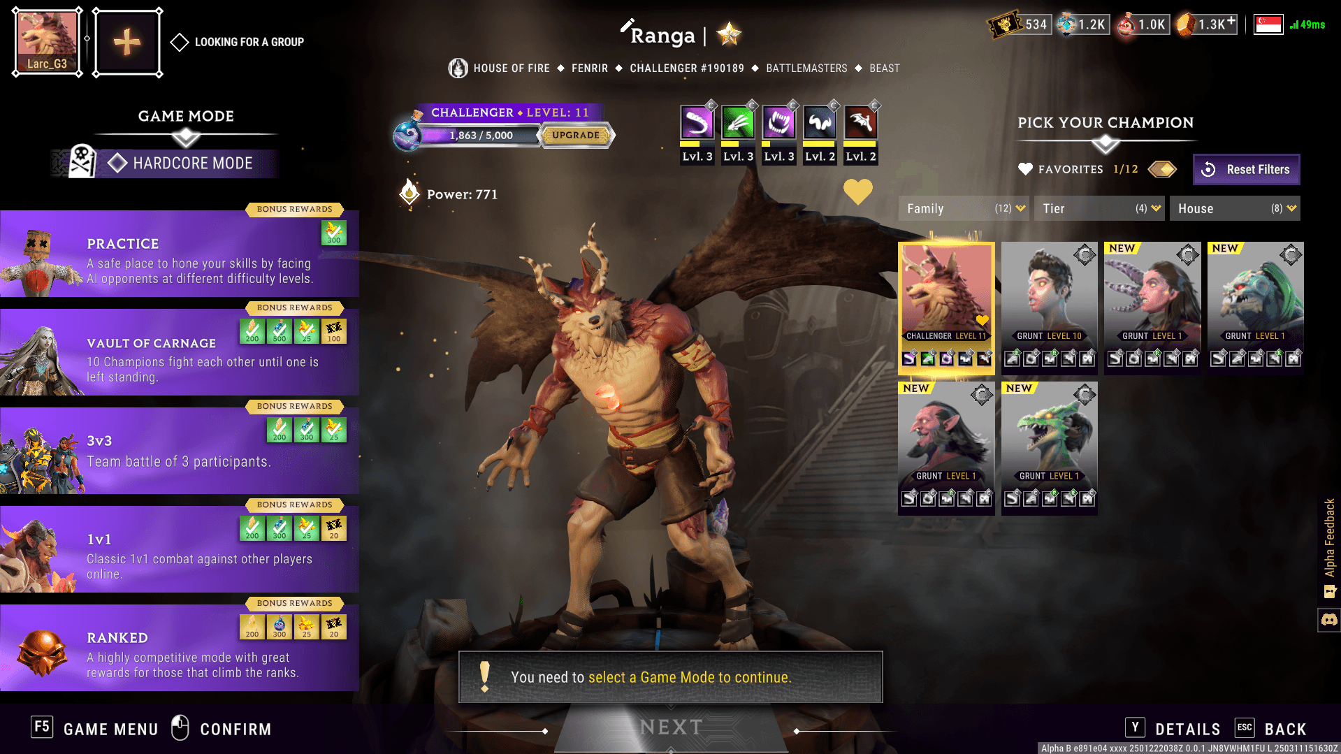 玩家一開始可以選擇三位初始角色之一:Fenrir(野獸)、Ilgra(人形)或 Saadari(不死族)。每位角色都有其獨特的能力,因此請選擇符合您遊玩風格或您想嘗試的策略的角色。遊戲不會手把手地引導玩家,選擇正確的英雄可能會影響您的戰鬥方式,因此在投入戰鬥之前,請花點時間了解他們的能力。